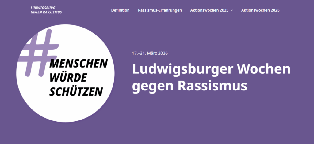 Unter dem Motto „Menschenwürde schützen“ finden vom 17. bis 31. März 2026 die Ludwigsburger Wochen gegen Rassismus statt. Nach dem erfolgreichen Start im Jahr 2025 machen die Ludwigsburger Wochen gegen Rassismus deutlich, wie wichtig Respekt, Offenheit und Zusammenhalt in unserer Gesellschaft sind. Gemeinsam mit Initiativen, Vereinen und engagierten Menschen entstand ein vielseitiges Programm voller Dialog, […]